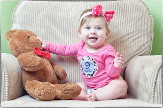 -Eleanor loves books. Loves them. She makes a beeline for her bookshelf daily. Once she gets there she pulls books off the shelf, looks at them, "reads" them, then tosses them to the side so she can pull out more books. It's hilarious and oh so cute. She has started pointing at things and when she reads she points to either the picture or the words. I'm one proud mama that she's starting some early book skills all on her own just from being read to here and at daycare :)